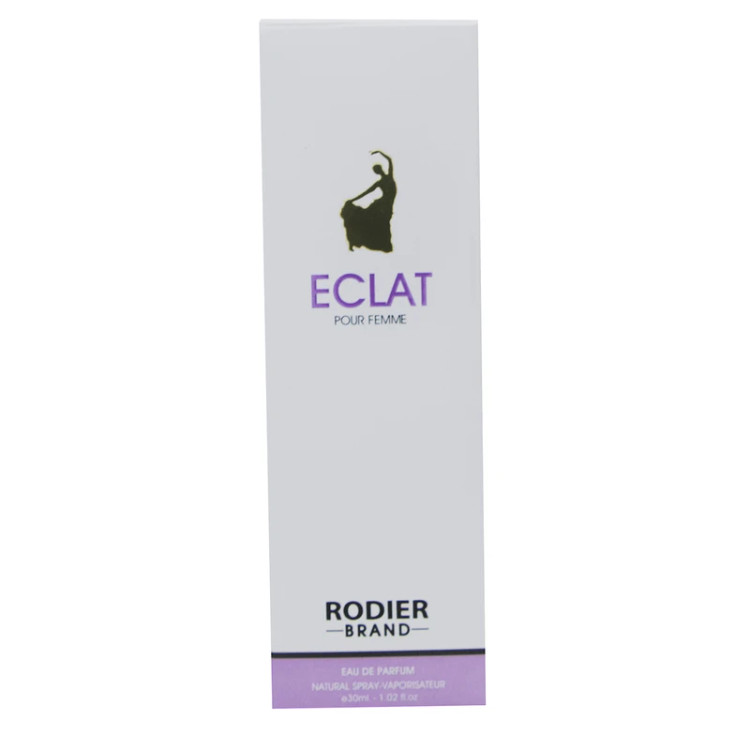 ادكلن RODIER ECLAT به عنوان يك رايحه ميوه اي، گلي طبقهبندي ميشود كه يك تركيب ظريف، شكننده و فرشته اي است. رايحه ادكلن ECLAT RODIER برگرفته از رايحه ادكلن ECLAT برند LANVIN ميباشد. نتهاي ابتدايي ادكلن اكلت رودير برگ چاي و شكوفههاي درخت هلو هستند كه يادآور، روزهاي نخستين بهاري ميباشد و با گذر زمان نتهاي مياني جاي نتهاي آغازي را ميگيرد اين نتها از تركيب مشك، ويستريا تشكيل شده كه با استشمام اين نتها آرامش و اعتماد به نفس شما چندين برابر خواهد شد و پس از مدتي نتهاي پاياني جايگزين نتهاي مياني خواهند شد، كه به رفع استرسهاي روزمره زندگي كمك بسيار زيادي ميكند.