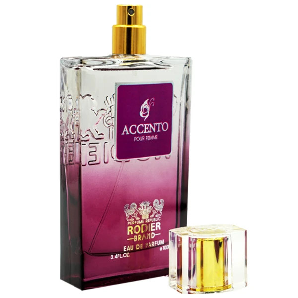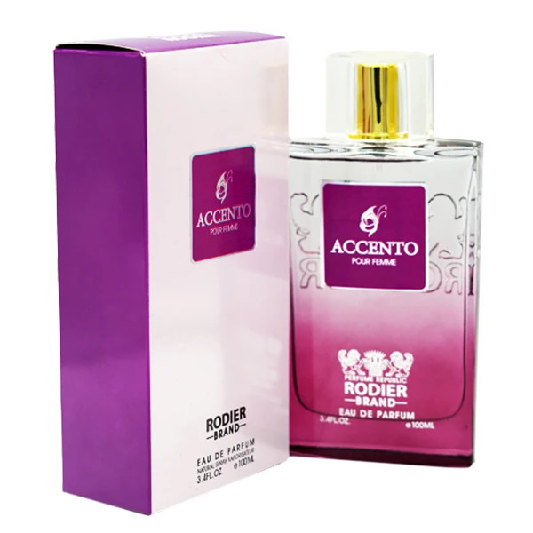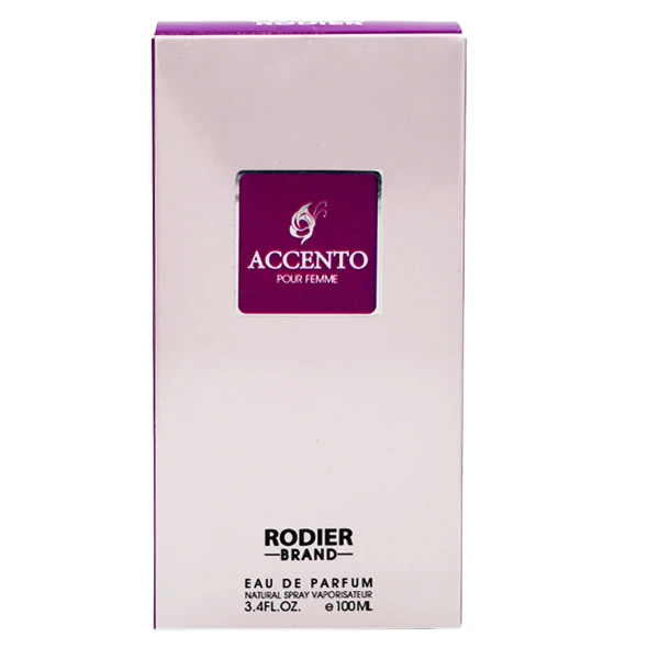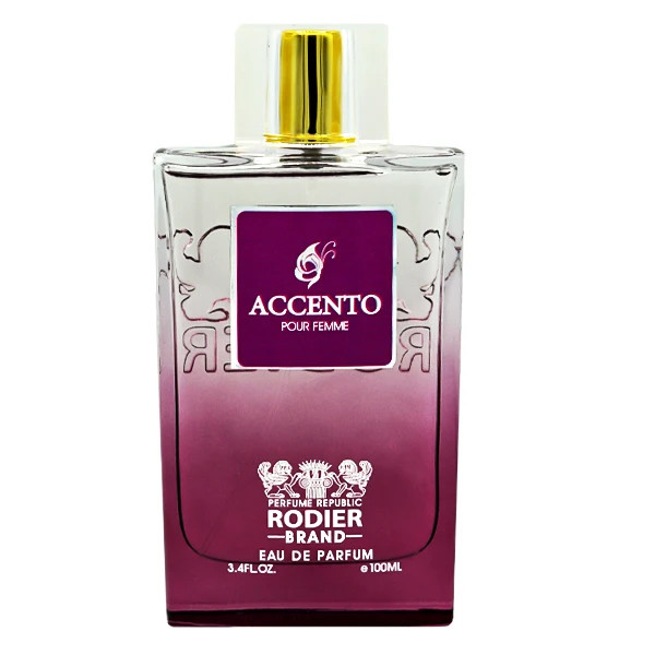 رایحه های اصلی ادو پرفیوم زنانه رودیر مدل اکسنتو ACCENTO شامل روایح شرقی و چوبی هستند. این روایح با هم ترکیب شده و یک حس تازگی و خنک را به فرد القا می کنند. ACCENTO یک عطر خاص و جذاب برای استفاده در فصول گرم سال و در همه موقعیت ها باشد.