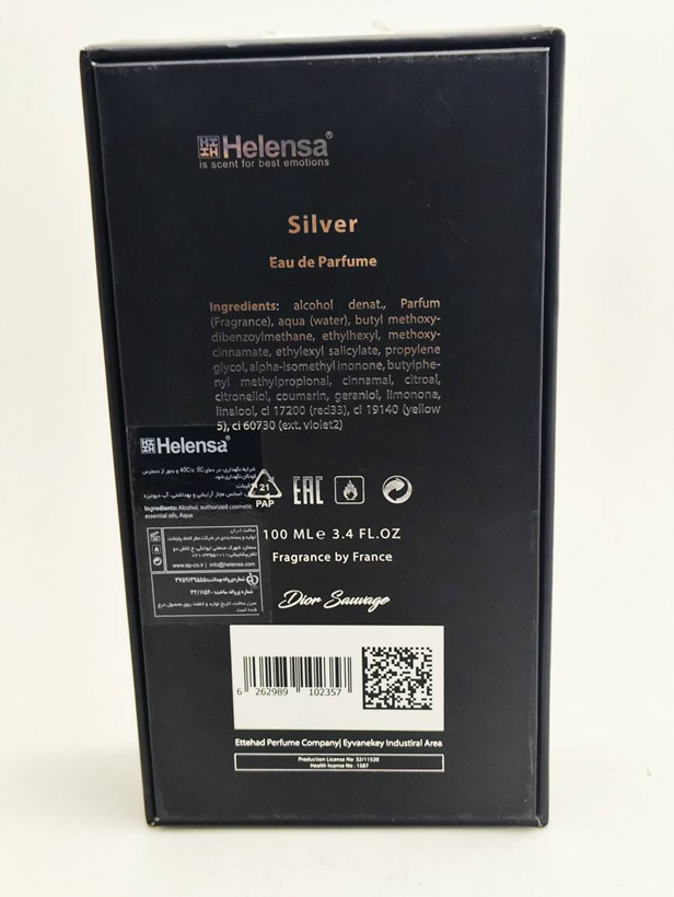 ادکلن مردانه سیلور عطری است مشکی از گل چوبی برای مردان. ادکلن سیلور در سال 2002 راه اندازی شد. رایحه اصلی آن شکوفه پرتقال ، آلو ، ترنج و نارنج ماندارین است. نت های میانی عبارتند از: ارکیده ، یاسمن ، یلانگ یلانگ ، رز و هلیوتروپ ؛ رایحه اولیه مشک ، بخور ، وتیور ، چوب صندل ، نعناع هندی و عنبر است. اگر شما جز مردانی هستید که دوست دارید اطرافیان شمارو به عنوان مردی منطقی با ابهت و جدی بشناسند یکی از عوامل بسیار مهم عطر شماست و عطر سیلور به طور اختصاصی برای شما مناسب است . ادکلن مردانه سیلور (silver) مخصوص هدیه ادکلن سیلور با رایحه دیور ساواج ادکلنی که به مرد زندگیتان عشق، شور و اشتیاق را هدیه می کند و برای هدیه دادن به پدر، همسر یا دوستتان گزینهای اصلی و مهم حساب میشود. دیور ساواج عطری است معطر فوژر و مردانه. دیور ساواج در سال 2015 عرضه شد. پشت این عطر فرانسوا دماچی است. رایحه اولیه ترنج و فلفل کالابریایی است. رایحه میانی عبارتند از فلفل سیچوان ، اسطوخودوس ، فلفل صورتی ، وتیور ، نعناع هندی ، شمعدانی و elemi ؛ رایحه اولیه آمبروکسان ، سدر و لبدانوم است. سفیر تبلیغاتی دیور ساواج گفتن این نکته خالی از لطف نیست که بازیگر مشهور و سوپراستار هالیود جانی دپ نیز، سفیر تبلیغاتی این ادکلن می باشد و در کمپین تبلیغاتی این ادکلن بازی کرده است.