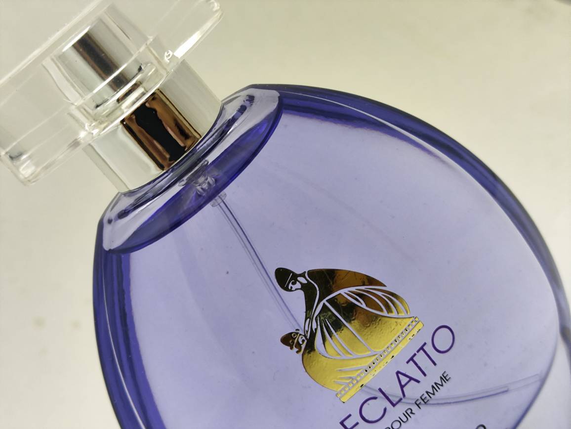 طراحی بطری این محصول با شیشهی شفاف، مایع بنفش و درب کروی، بهخوبی حس لطافت و زنانه بودن رایحه را منعکس میکند. بستهبندی بنفش و نقرهای آن نیز ظاهر شیکی دارد و برای هدیه دادن کاملاً مناسب است.